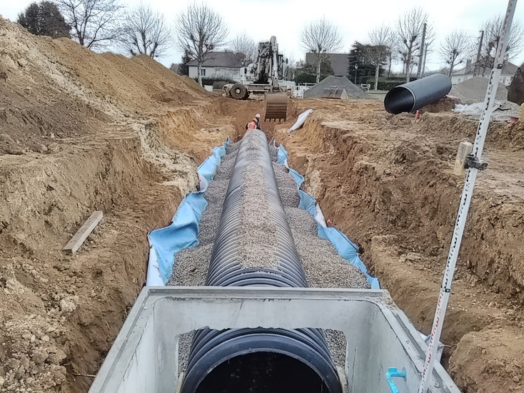 The ALP Géomètres design office was tasked with finding solutions for infiltrating runoff water in situ, following the recommendations of the building permit, which ruled out any discharge into the public sewer. The terrain was conducive to local infiltration, with hydraulic conductivities between 10-4 and 10-5 m/s. As the common areas were to be returned to the commune of Dordives, a single structure was essential to manage the risks of diffuse or accidental pollution.